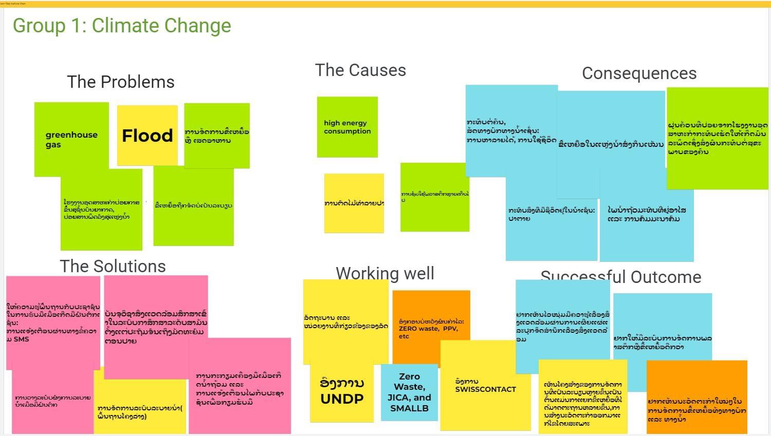 *Photo 2: Participants divided into two groups to discuss topics related to water security and climate change by using a problem-solving toolkit. Photo: SYP Laos.
