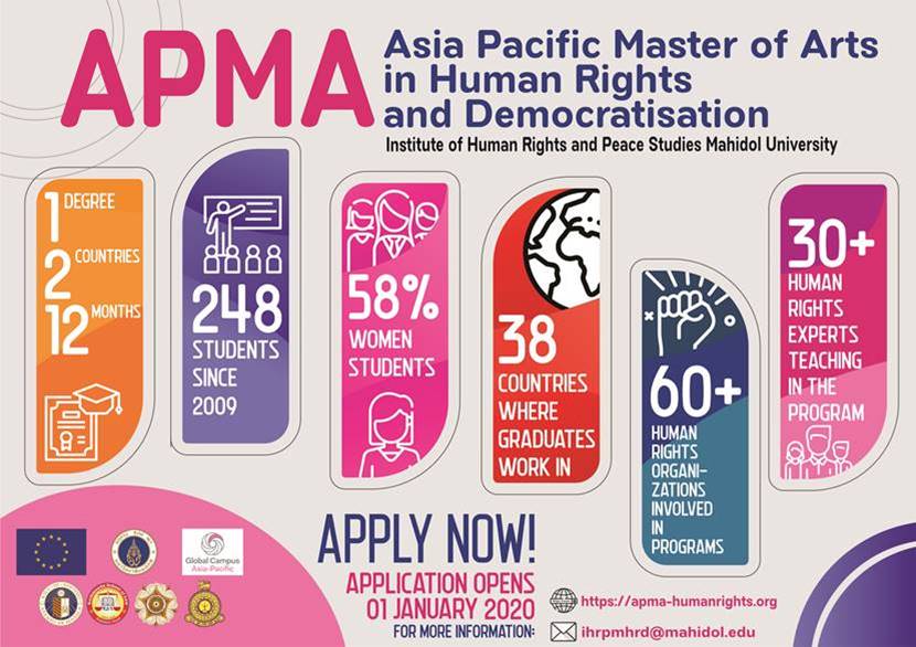 The Asia Pacific Master of Arts in Human Rights and Democratization (APMA) is an intensive interdisciplinary one year graduate program that reflects the inseparable links between human rights, democracy, and peace and development in the Asia Pacific region.