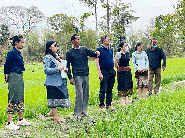 Ms. Oulavanh meets with farmers in Savannkhet province to ensure that practices are based on local preferences.