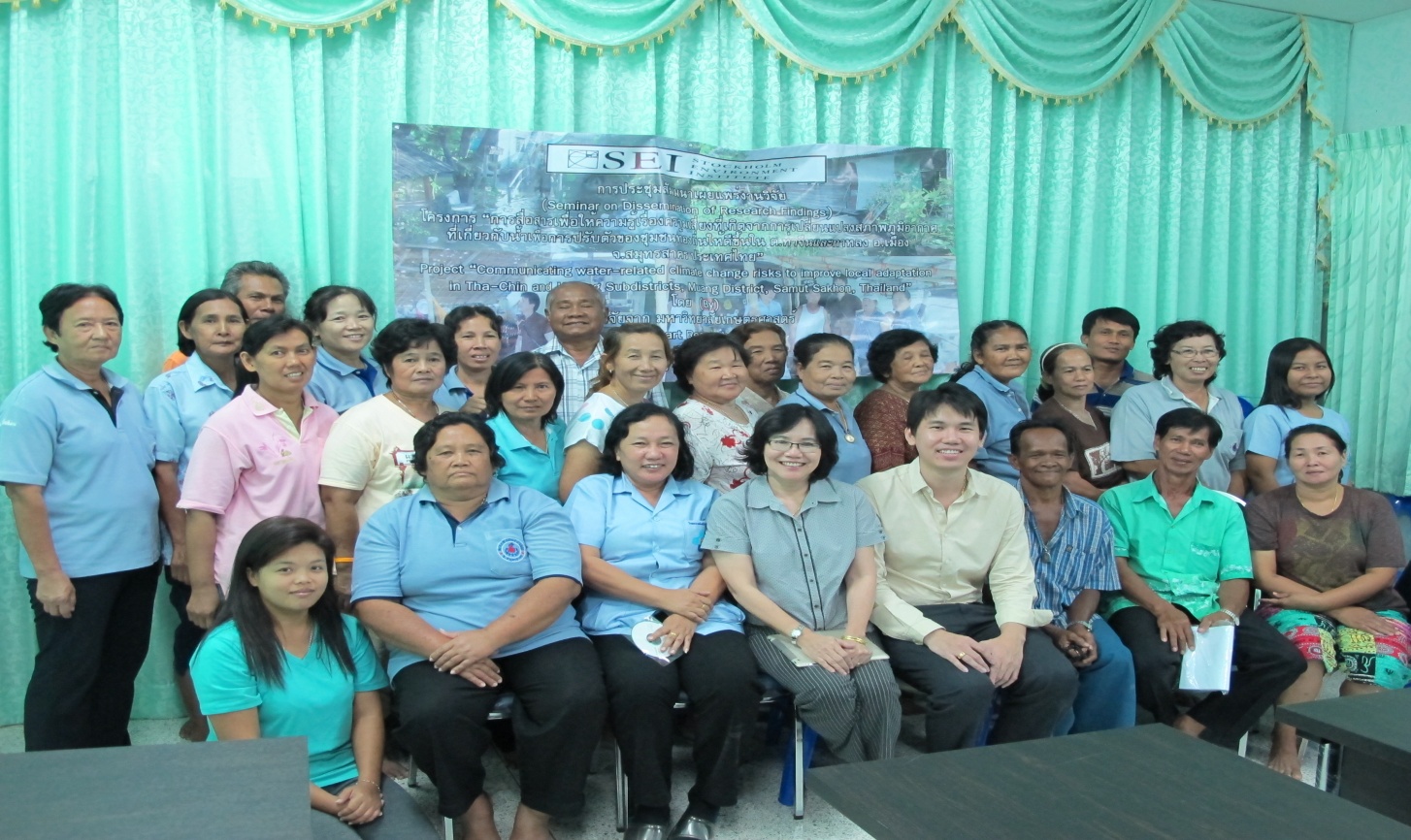 The two groups invited to attend this seminar were the leaders from the Tha Chin and Kalong Subdistricts Administrative Organization (SAO) and volunteer groups in both subdistricts. These groups have a significant influence among local people in changing local behaviour for adapting to climate risks.