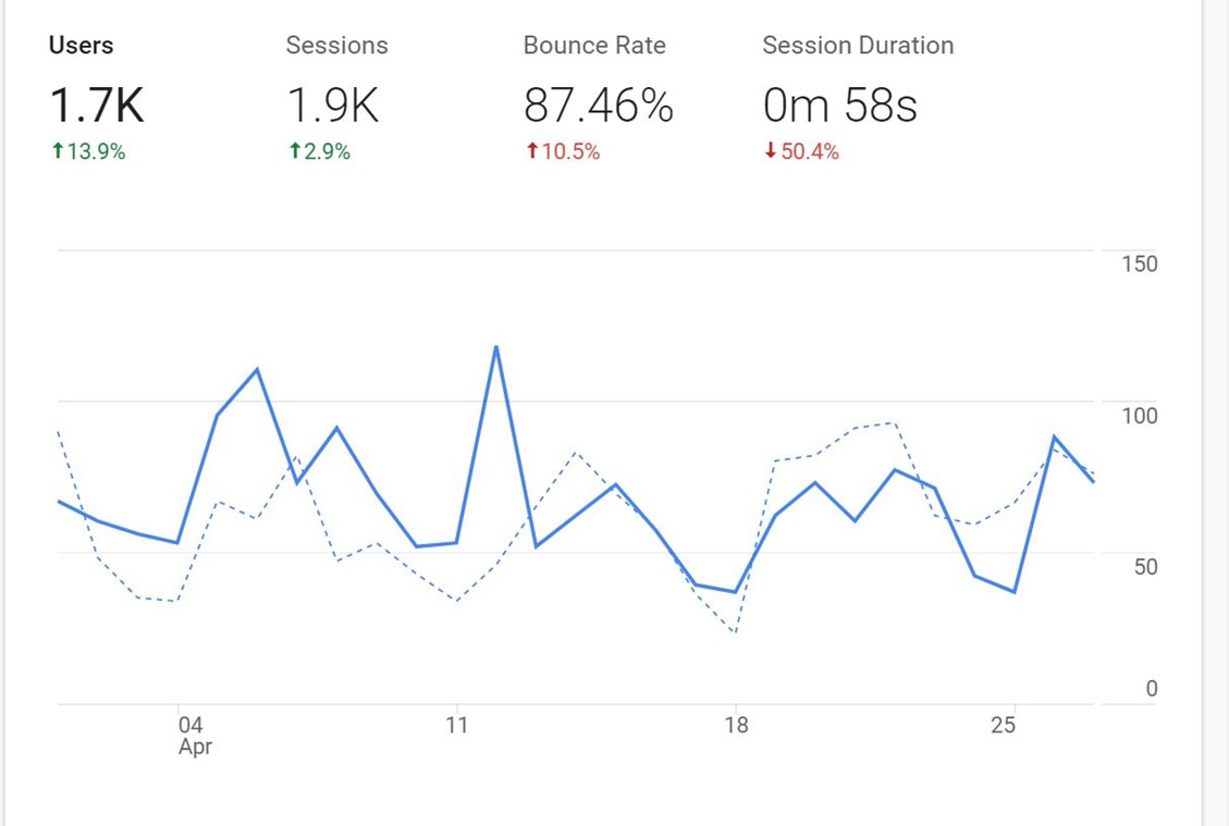 From our analysis, we found that an average of 1,700 users monthly directly assess the website through an organic search using their web browsers.